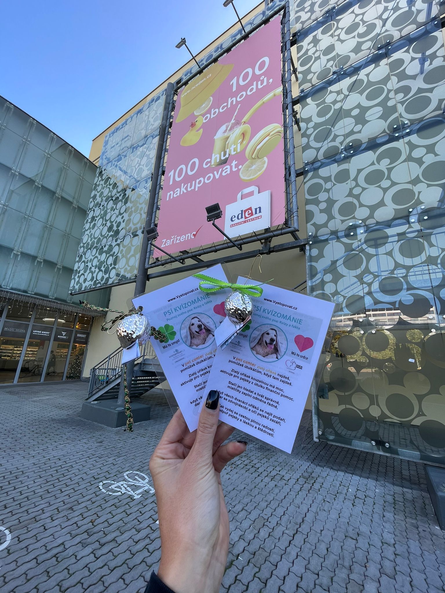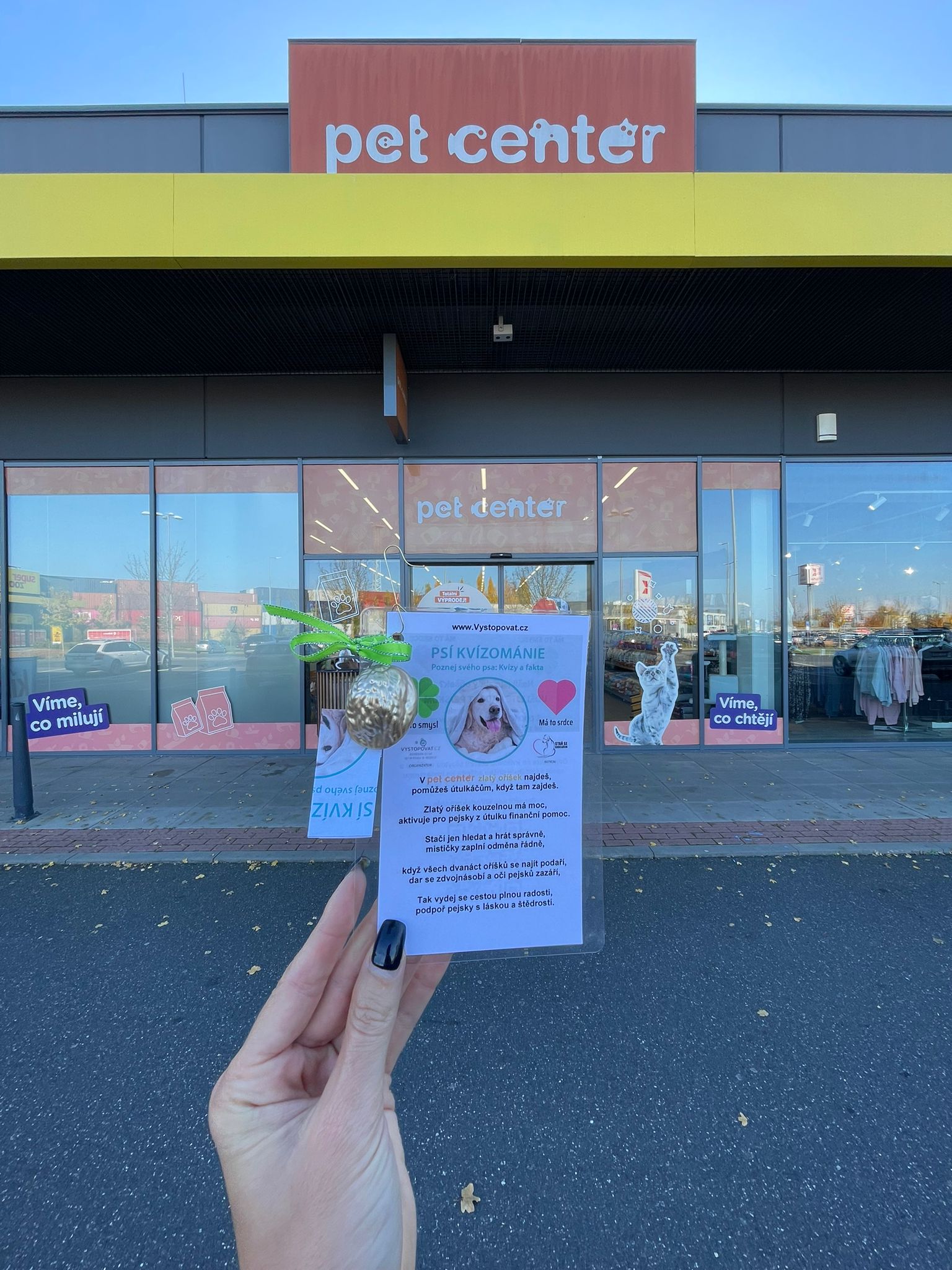 V deseti pobočkách PET CENTER v Praze bylo ukryto 12 oříšků s kvízovou otázkou. Za každý nalezený oříšek byla aktivována částka 1 000 Kč, která šla na podporu útulku Voříškov.